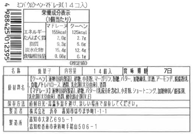 クーヘンマドレーヌ14コ入