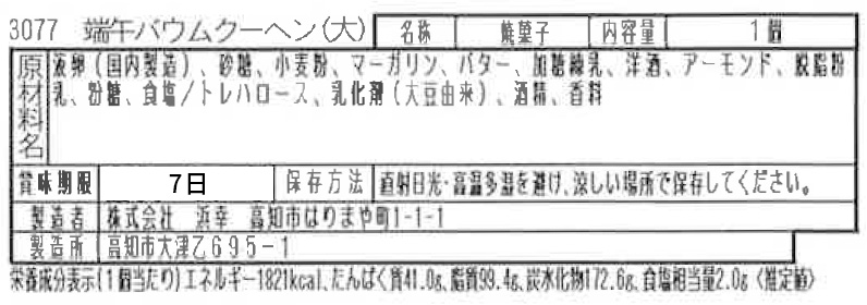 1.端午の節句 祝包み(大) 端午バウムクーヘン 大【3077】